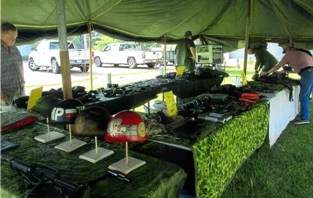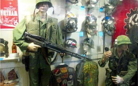 The North Louisiana Military Museum is a place filled with the historical memorabilia of war from the Spanish American War to Desert Storm and into the current war on terror. Outside the museum Ernie Stevens, the museum curator, has amassed 15 different rare military vehicles and aircraft that includes a RussianSA-2 missile, a M113 armored personnel carrier, M551 Sheridan tank, and 2 aircraft that every Vietnam veteran remembers, an A-4 Skyhawk jet and a UH-1 Huey helicopter. And then there is the little army mule that was used to haul supplies, water, and ammo during Vietnam. And then there are other pieces of artillery and tanks! Plenty to look at outside and on the day of the visit several re-enactor groups set up displays from the Vietnam War. Jason Langlinais had a very large display of items from Recon Team Louisiana MACV SOG (Vietnam Re-enacted) that these special force units used during the war. Recon Team Louisiana was feared by the Viet Cong and NVA troops for their courage and ability to take the fight to the enemy. Included in this display were items from the Montagnards who fought alongside the Americans in Vietnam. And Apache Troop 1/9 Cavalry (1st Cavalry Vietnam Re-enacted) had vehicle displays and during the day they set up a large weapons demonstration. During the demonstration those in attendance got to see how the M-16 rifle and M-60 operated and were fired. One World War II veteran spoke of how fast the M-16 and M-60 could fire compared to the M-1 rifle and M-1 carbine of World War II that he had used during his service.
