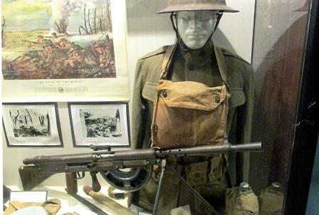 Inside the museum it is filled, and I mean filled, with thousands of artifacts. Every war has artifacts, uniforms, and weapons depicting it. The museum has a very extensive weapons collection, from pistols, (including a rear Liberator pistol of World War II), rifles, sub-machine guns, automatic rifles, and machine guns. One display that caught my eye was the Home front display. It is set up just like a living room during World War II of a family who has someone in the service and is filled with personal items. It reminded me of how my grandparents' home was set up with them having 3 sons in the service during the war. And if you are interested in machine guns, there is one of the largest displays of military machine guns that I have ever seen with them affixed to the many various types of mounts to support them. In the Vietnam POW display there is the uniform and personal items that American POW's were issued by the North Vietnamese military.