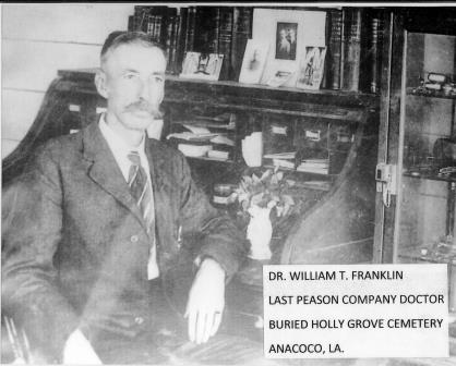 11) Dr. Alford was the first company doctor at Peason. He supported Huey Long who was running for governor and was replaced by Dr. Thomas Franklin. Mr. Peavy was afraid that Huey Long would organize the mill workers into a union. The company doctors delivered many babies and doctored everyone in the town.