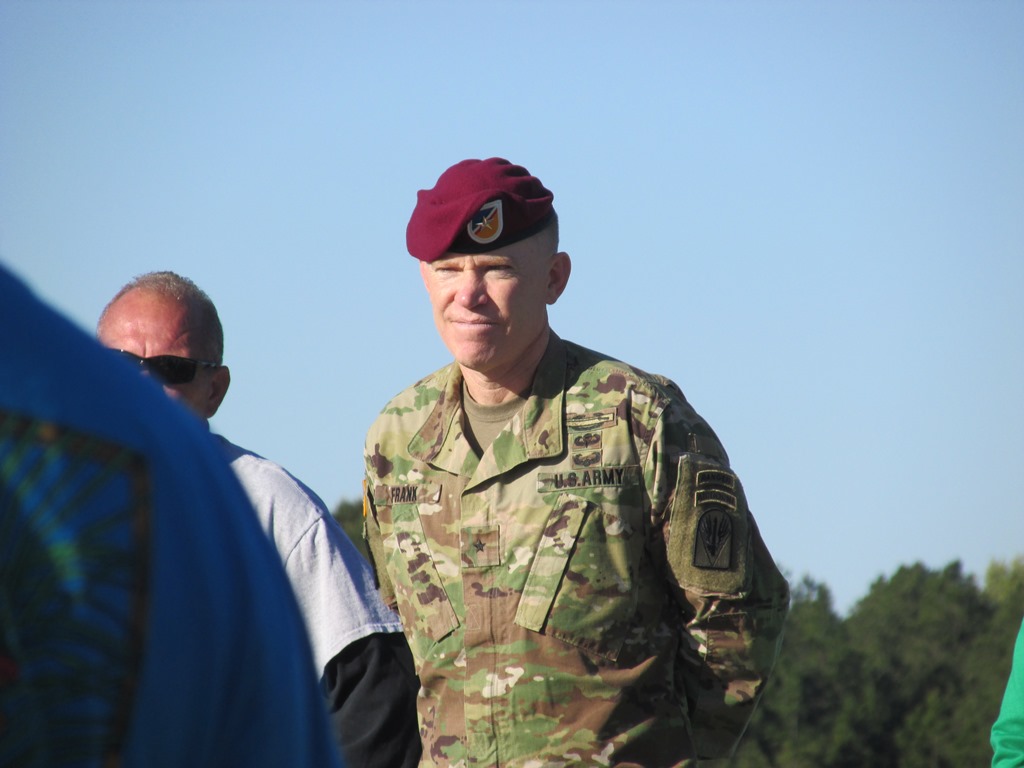 General Patrick Frank, commander of Ft. Polk and the Joint Readiness Training Center, along with his wife, came to the Peason Ridge Tour and greeted those going on the tour. (Robertson Collection)