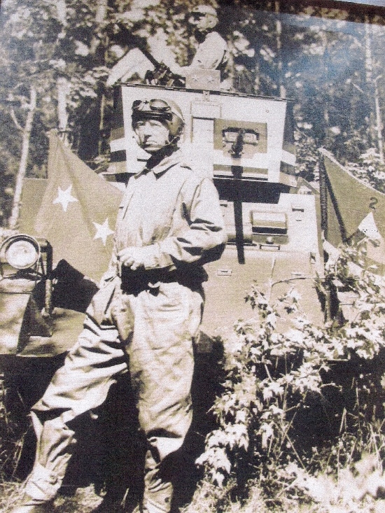 General George Patton pictured next to his lite tank during the Louisiana Maneuvers. General Patton's armored units battled the 3 Prudhomme Brothers during the Battle of Bermuda Bridge in 1941. (Robertson Collection)