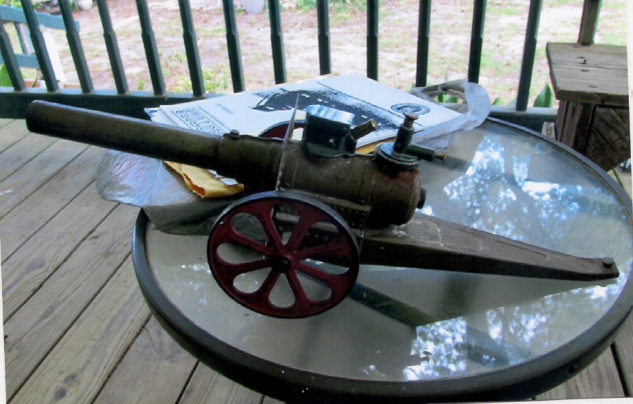The three boys were sitting on the front porch of their father's store one morning and on the east side of the river they saw a military vehicle approaching and it slowly stopped with a soldier getting out scouting the area. The river bank was covered in thick vegetation, but the boys saw the soldier sneaking around trying to peer through the vegetation. The boys could see the soldier had a pair of binoculars and he was attempting to climb a tree for better viewing of the area. At this time, the Bermuda Bridge had been declared "knocked out" due to having been flour bombed. Umpires had declared that it had been bombed and troops could not use the bridge. As they watched the soldier looking around the area with his binoculars, they decided to have some fun. The boys had a small carbide cannon, known as a "Big Bang Cannon" that operated off of carbide. The boys loaded up the cannon and fired at the soldier just to see what would happen. And when they fired the soldier jumped out of the tree and got in his vehicle and drove off in a big cloud of dust! The battle had begun!
