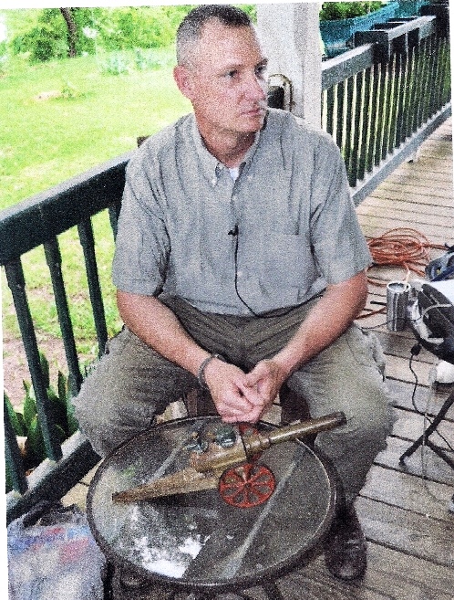 I was blessed recently, along with Fred Worthington and Dr. Patsy Barber, to visit with Vivian Prudhomme Duggan who is the sister of the three boys, her husband Ted, Kathy Prudhomme Guin, Sandra "Sam" Prudhomme Haynie, and Kenneth Andrew "Drew" Prudhomme as we researched for the upcoming documentary about the Louisiana Maneuvers named "10 Days In September: The Untold Story of the 1941 Louisiana Maneuvers." On the porch of the Duggan Home at Bermuda we sat on the porch and had the best visit with them as they all shared the story of the Battle of Bermuda Bridge as told them by their family members the late Al, Mayo, and Kenneth Prudhomme. And remember the cannon involved in the battle? Yes, it is still in the possession of the family! And Drew, Kenneth's son, keeps this family treasure and brought it and let us look at it. And believe it or not the little cannon will still fire! He showed us the simple firing mechanism of the cannon and how it was loaded, primed, and fired. The three boys made a great gun crew! Mrs. Vivian doesn't know exactly if the big bang cannon was a birthday or possibly a Christmas gift to one of the brothers but they played with it and fired it often. And from her home on Cane River we could see the historic Bermuda Bridge. Fred and I were taken by Kathy and Drew to the historic bridge and to the restored Prudhomme Store location, both located and part of the Cane River Creole National Historical Park as of 1997. While standing in front of the store you can almost picture the three boys loading and firing their cannon as they battled the U.S. Army in 1941. And as you look around you can see the beauty of the plantation and all the many buildings associated with it. And Sandra Prudhomme Haynie has also written the genealogy and history of her family in the book Legends of Oakland Plantation: The Prud'hommes of Natchitoches Parish. Many thanks go to these family members of the three Prudhomme brothers and for their true Southern hospitality.