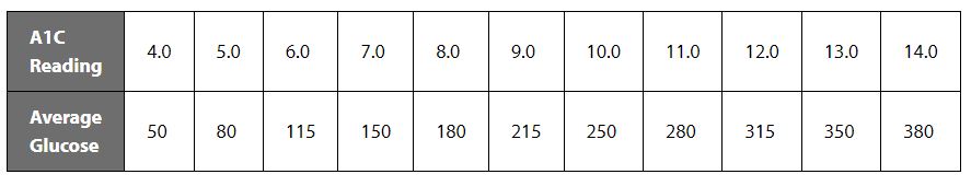 For the most part, everyone who sees a health care professional to care for their diabetes knows that an A1C is what their doctor uses to measure glucose control. On the other hand, not everyone knows exactly what an A1C measures or what the numbers even mean. For those who do not - an A1C gives an average glucose level over a three-month period. The numbers given to us represent a three-month average glucose level. See the chart below: