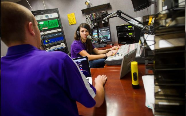 Our entire on-air staff is comprised of SFA students enrolled in the Audio Production (MCOM 2303) and Capstone class (MCOM 4320).These classes offer students a chance to learn valuable information about radio and gain experience working in a professional environment. KAXM-FM offers students a hands-on training facility and gives them the opportunity to work as on-air disc-jockeys, news reporters, sports reporters, production and promotion assistants, talent for various remotes throughout each semester, and much more.