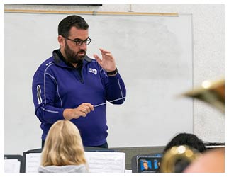 Prior to joining SFA's School of Music, he was the associate director of bands and the director of athletic bands at Georgia Southern University. He directed their Southern Pride Marching Band, Wind Symphony and pep bands in addition to teaching marching band techniques and graduate drill writing and arranging.