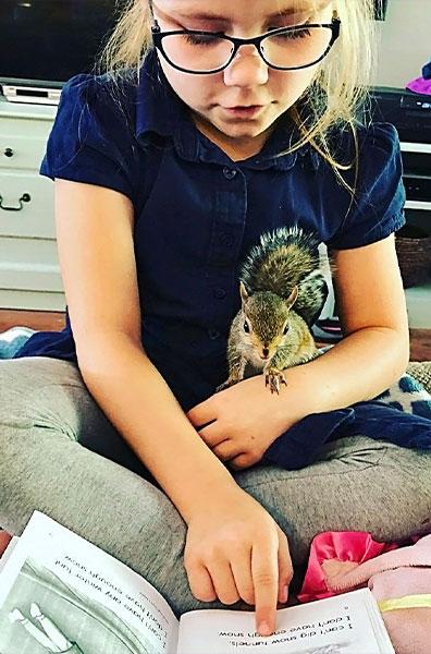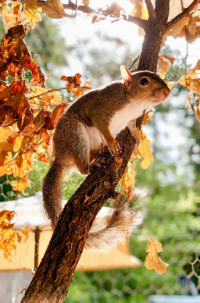 When a baby squirrel tumbled from a tall tree last spring, she landed on the porch of the Prunés family home, where DeAnna '08 and her two daughters, Bella and Chloe, found her. Unable to return her to the nest, they nursed the squirrel to maturity, later releasing her back into the wild, where she now enjoys life in the yards and trees of her Lufkin neighborhood.