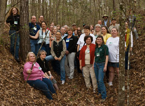 The series of lectures are part of the Camino Real Heritage Education Project funded by the National Park Service – Intermountain Region. The Project recently completed the first of two workshops with El Camino Real de los Tejas Heritage Tourism Workshop. Traveling from as far away as Castroville, Texas and Baton Rouge, Louisiana, thirty heritage resource managers and independent researchers gained new information and insights on the newly designated National Historic Trail. Held on Saturday, March 7th and Sunday, March 8th, the workshop group traveled to Mission Dolores Visitor Center in San Augustine and toured a section of the trace near Geneva, Texas.