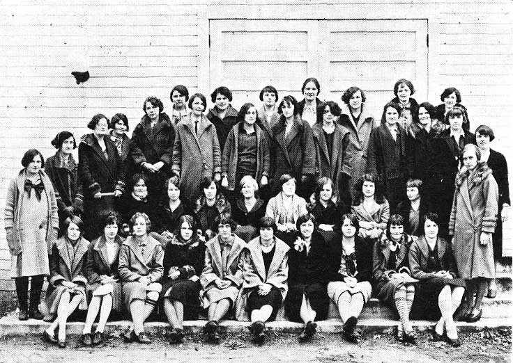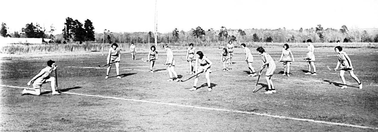 Women’s Field Hockey: The SFA Women’s Field Hockey Team of 1932. The field hockey teams were very active in the early years; the 1928 Stone Fort said: “They wield a wicked stick!” It was the “Basketball Girls” who in 1924 were the first women’s team to appear on campus and who were to continue to play an increasing important role. Volleyball was the chief game in classes.